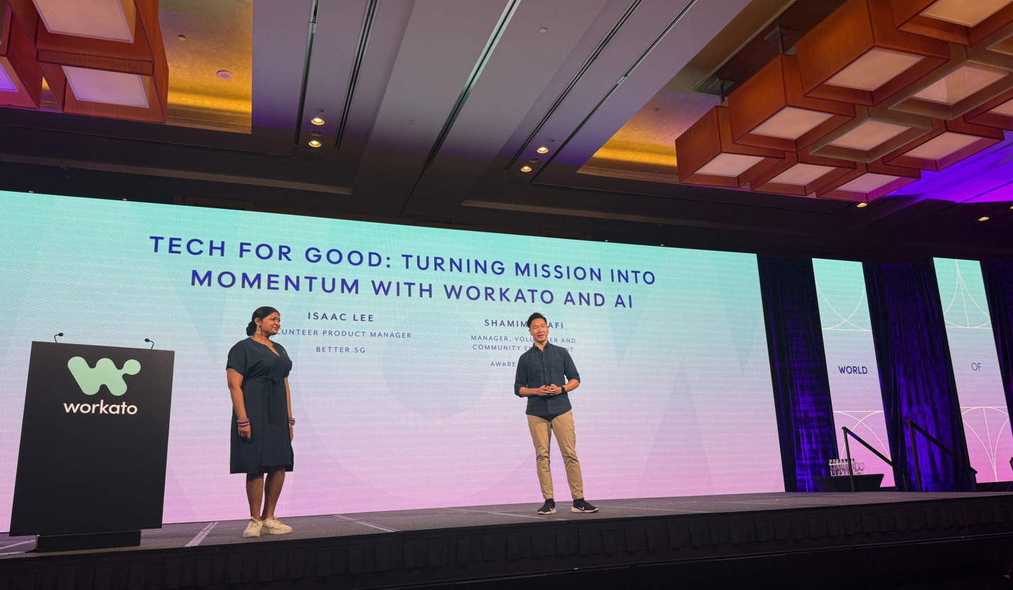 WOW Singapore 2025 made waves at Marina Bay Sands in Sep 2025, bringing together over 1,200 attendees from different industries and business functions for two days of bold ideas, hands-on learning, and momentum in AI and orchestration. At the event, Better.sg was honoured with Workato’s Impact Award, spotlighting our community’s commitment to building practical, human-centred solutions.